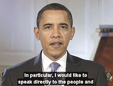 No vídeo, com legendas em persa, Obama traz ainda um tom criticamente diferente de seu antecessor republicano, que incluiu Irã, assim como Coreia do Norte e Iraque, no "eixo do mal" dos países que promovem o terrorismo.